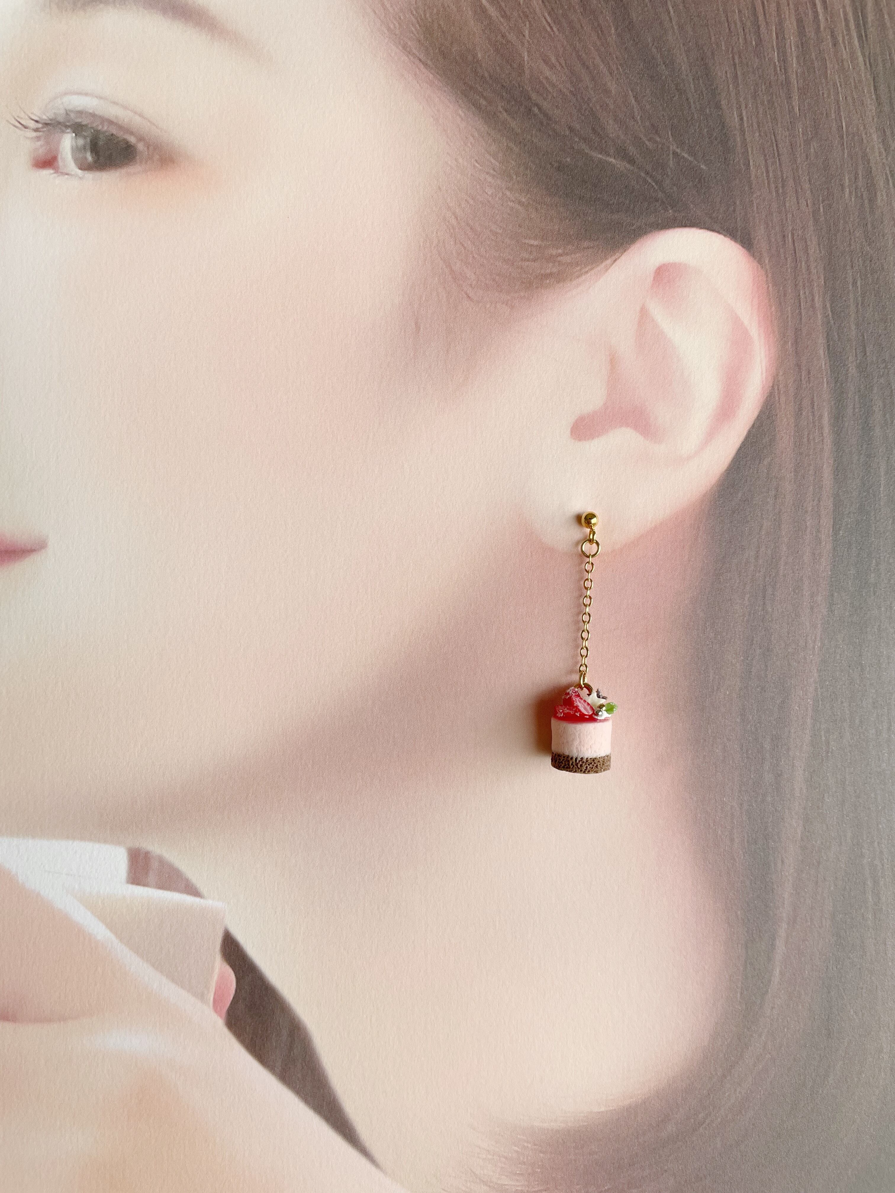 樹脂粘土で作ったクリスマスパフェとストロベリーチーズケーキをピアスにしました。